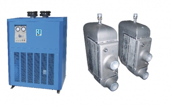 型冷干機,采用美國API板翅式換熱器,將預冷回熱器-蒸發器-氣水分離器三器合一,是目前國際先進的熱交換模式,同時結合先進加工工藝,換熱效果